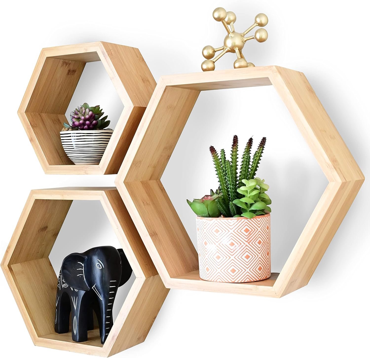 Beautiful, durable, and sustainable. Bamboo is the perfect premium hexagon floating shelf material.